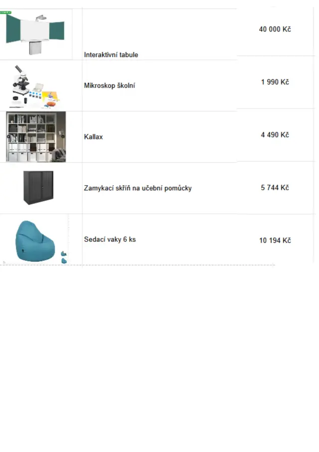 V případě vybrané vyšší částky, použijeme peníze na další základní vybavení specializovaných učeben viz seznam úplně na konci.