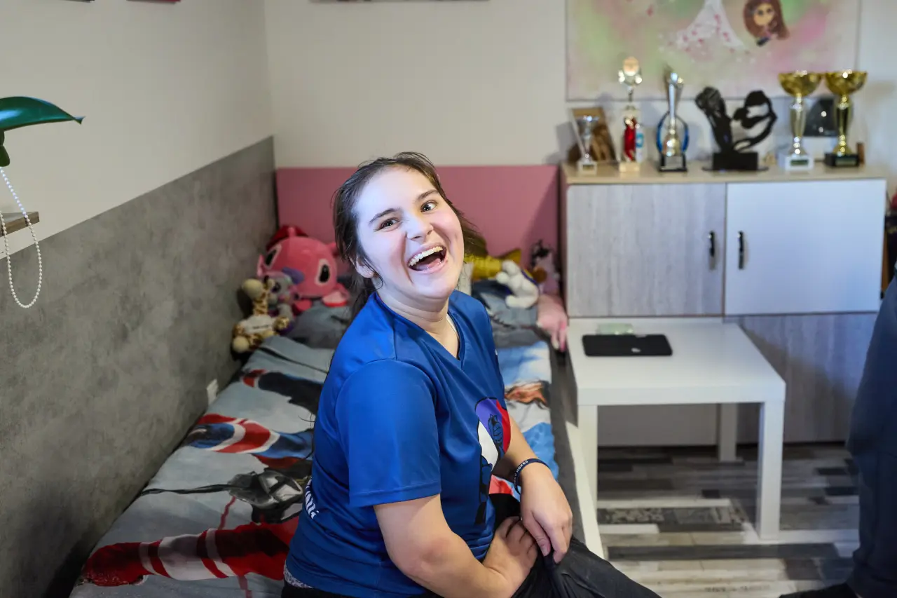 Po chvilce pauzy Kamila odpoledne cvičí na přístrojích, které má doma. Pak si musí udělat úkoly a učit se. Třikrát týdně ji také rodiče vozí na tréninky v armwrestlingu.