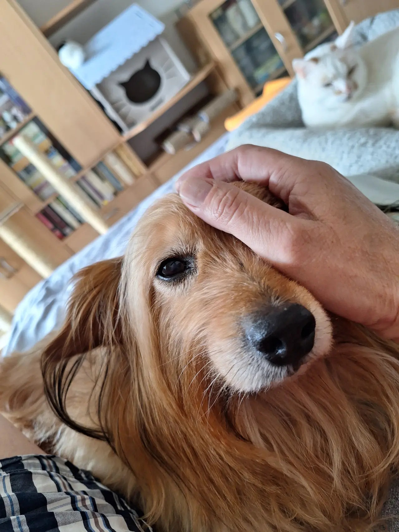 Vzhledem k věku, cca 9 let, u něho poslední týdny pozoruji špatný sluch. Nevadí, pojedeme na znakovou řeč.🥰
