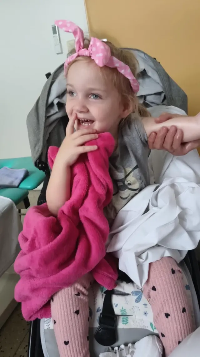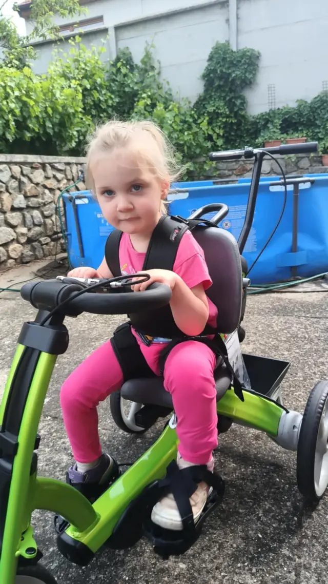 Adélce postupně ubývá síla, stabilita i schopnost samostatného pohybu. Její chůze je velmi nejistá, často padá, levá strana těla ji neposlouchá a při každé infekci nebo větší zátěži se její stav zhoršuje. Přesto je to usměvavá holčička, která miluje písničky a mazlení.