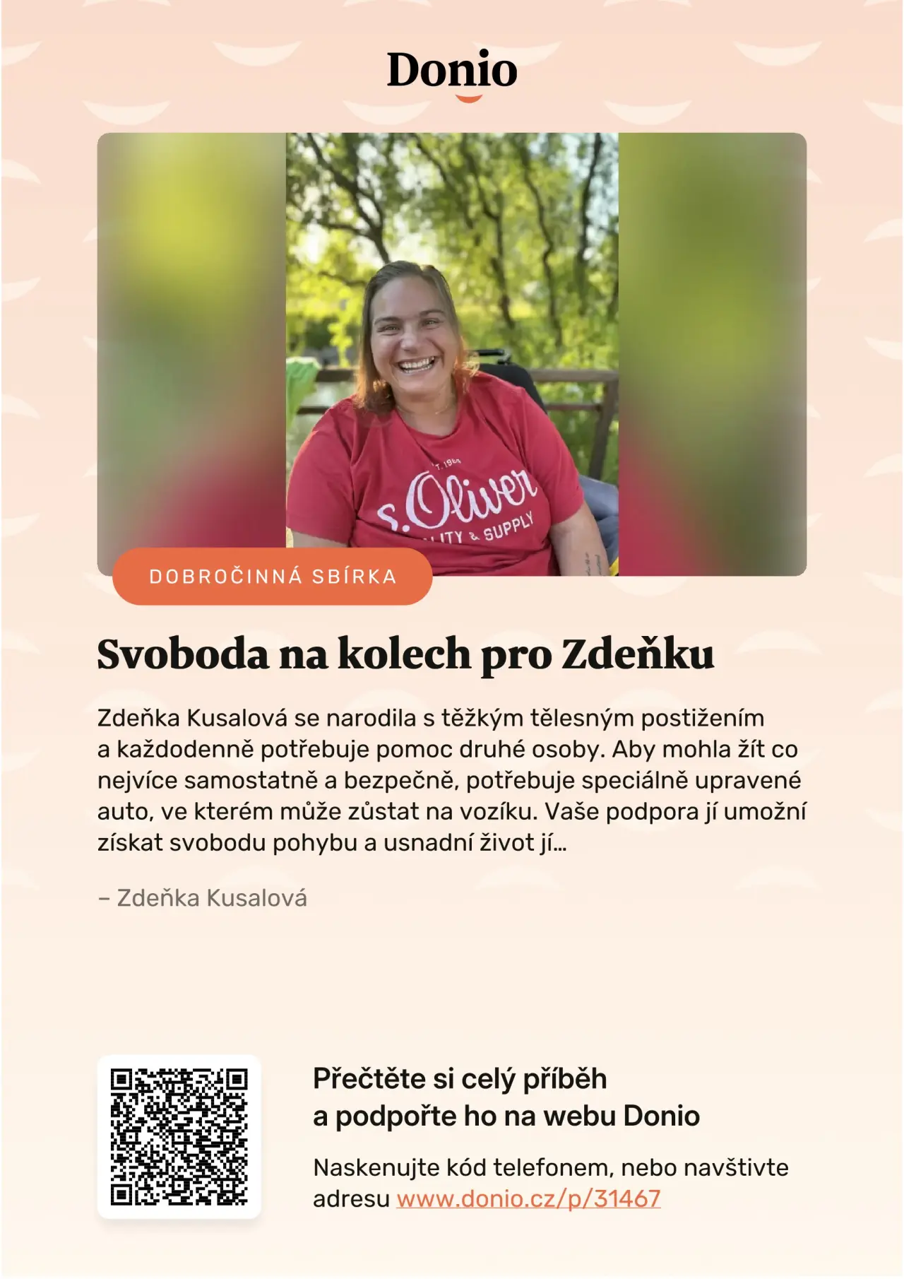 Zdeni, jsem přesvědčena, ze ty peníze vybereme a ty budeš jezdit tak jak si přeješ!