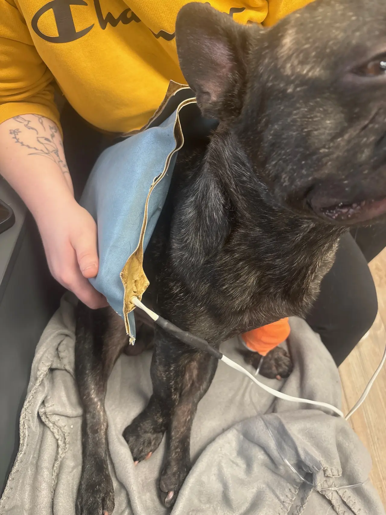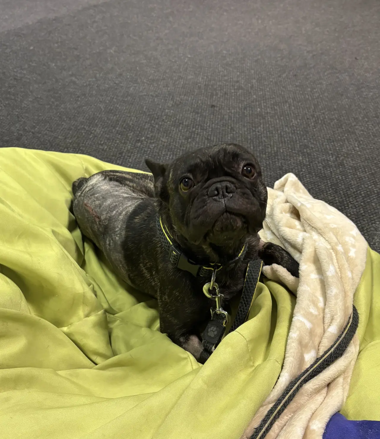Přejeme brzké uzdravení a náš fran. buldoček Pablo přeje hodně sil💜