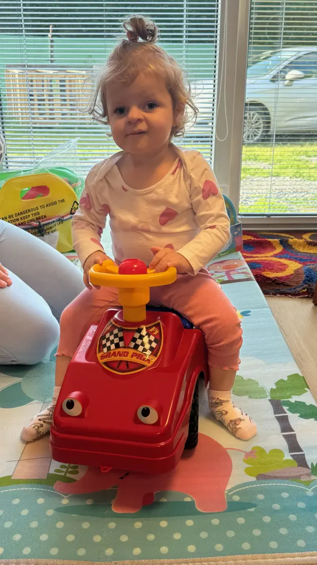 V oblasti pohybu se objevuje mírné zlepšení. Emilka se snaží obcházet nábytek, ale má výrazné potíže s vývojem pravého chodidla, které není správně postavené pro chůzi a při zátěži se třese. Přesto stále věříme, že jednou bude schopná samostatně chodit.