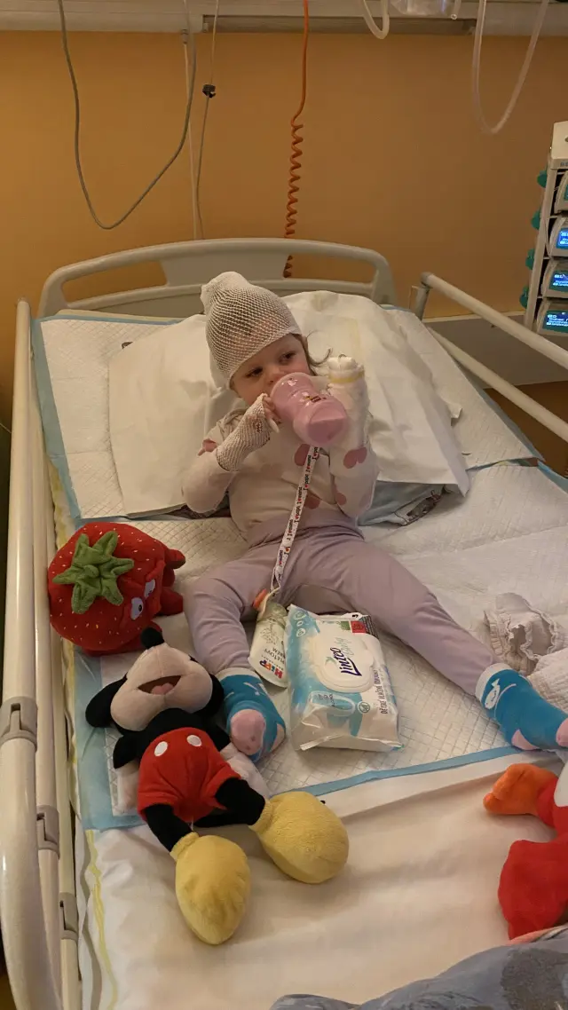 U Emilky se třináctý den po porodu objevily epileptické křeče a apatie. V plzeňské nemocnici nám lékaři sdělili diagnózu agresivního zhoubného nádoru na mozku o velikosti 6 cm. Emilka byla převezena do FN Motol na ARO, kde podstoupila velmi náročnou léčbu – 18 chemoterapií a složitou operaci hlavičky.