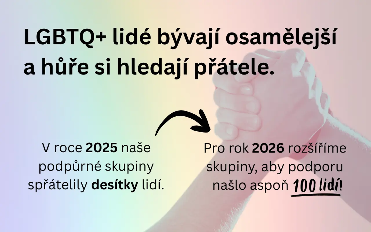 Podpoříte vznik celé jedné podpůrné skupiny! Díky tomu se potká 12 LGBTQ+ lidí a budou sdílet, co je těší i trápí.