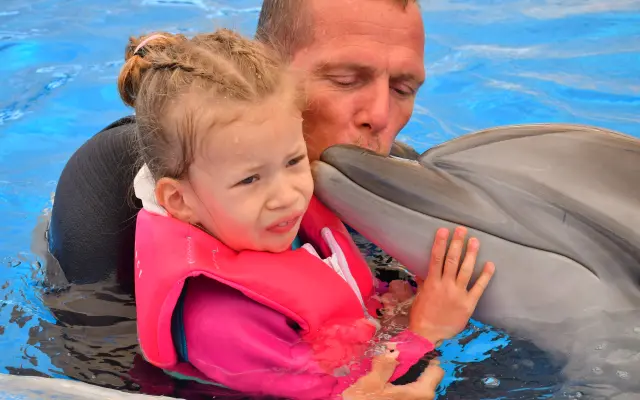 Věříme, že právě delfinoterapie má potenciál Terezce pomoci s rozmluvením. Kombinace jedinečných vibrací a kontaktu s delfíny často otevírá cestu k řeči. Je to pro ni šance na lepší, samostatnější život.