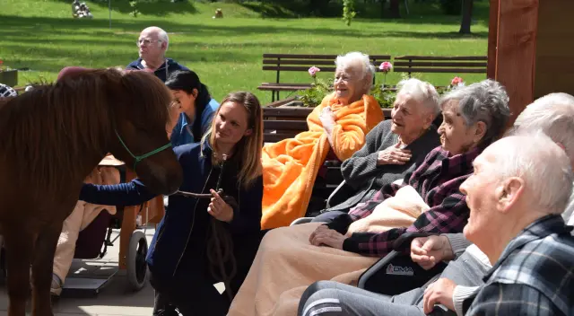 „Když jsem hladila koníka, vybavila se mi naše stará stáj. Tolik let už jsem na to nevzpomněla,“ vzpomíná paní z domova pro seniory.