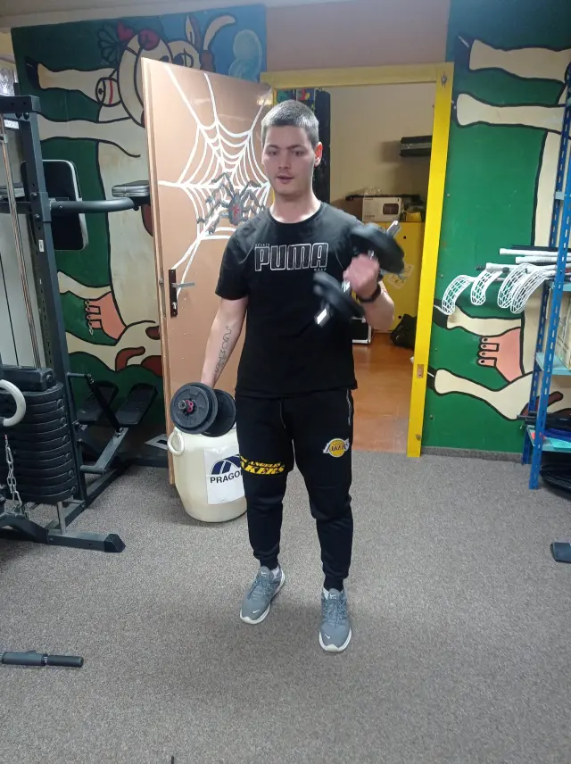 Občas se také zastavím v chráněném bydlení, kde jsem dříve žil, a pomáhám s vařením nebo prací na zahradě. Také rád sportuji, hraju fotbal, doma si cvičím s činkami. Sport sleduji i v televizi.