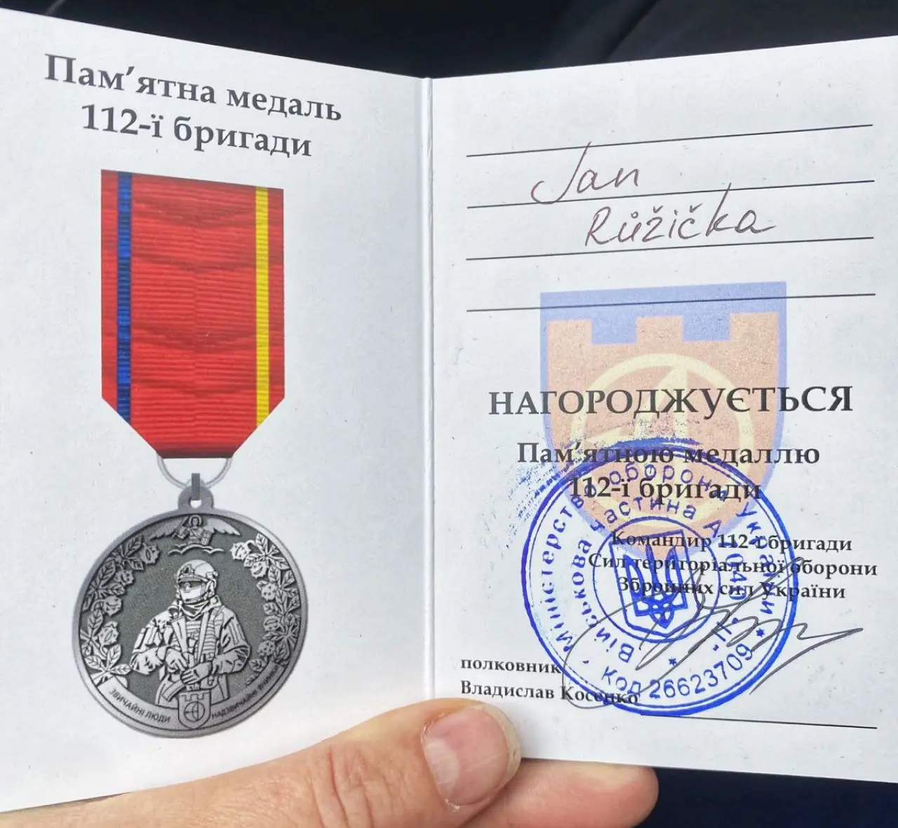I tato pamětní medaile od 112. brigády teritoriální obrany patří hlavně vám, dárcům: