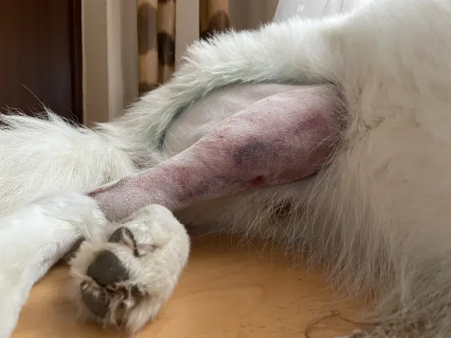 Na fotkách můžete vidět jeho stav – otoky, modřiny, velkou bolest, únavu po narkóze… 🐕🦺💔