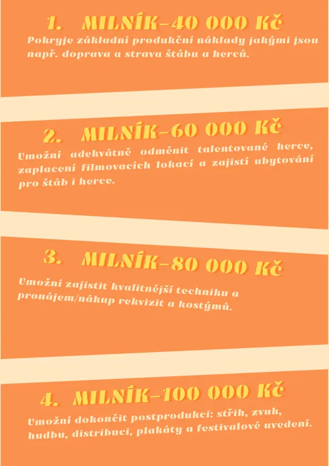 Umožní zajistit kvalitnější techniku a pronájem/nákup rekvizit a kostýmů.