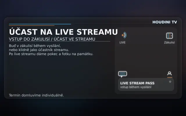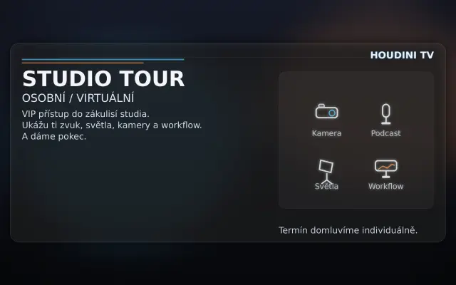Chci postavit kvalitní, stabilní studio pro tvorbu obsahu pod značkou HOUDINI TV. Ne “nějak to půjde” setup, ale zázemí, které bude mít čistý zvuk, konzistentní obraz a profesionální světlo, aby rozhovory, live stream i komentáře k týdenním událostem měly úroveň a nemusely bojovat s technikou.