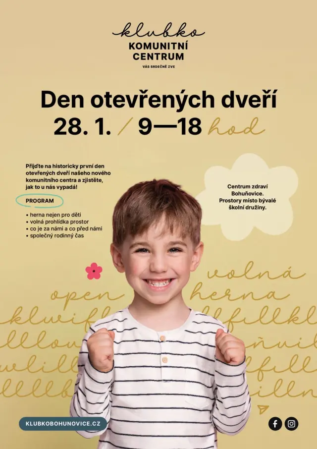 V Bohuňovicích se rodí nový projekt – Komunitní centrum Klubko. Toto bezpečné a přátelské místo je určeno pro všechny generace, od nenarozených miminek po seniory. Z iniciativy maminek vzniká prostor pro setkávání, sdílení zkušeností a podporu. Připojte se a podpořte jej!