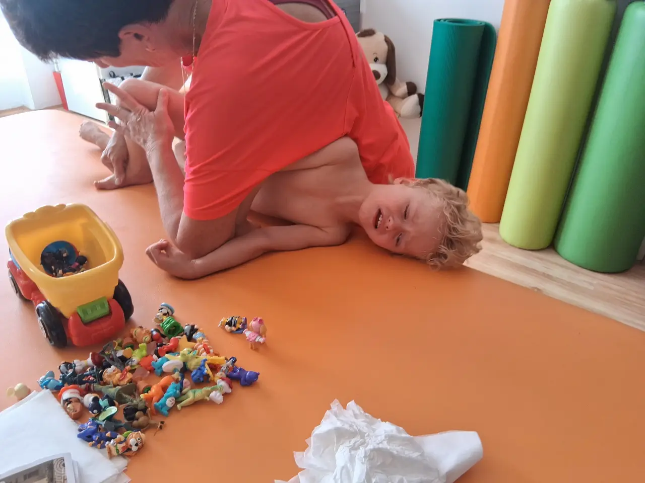 Pro jistotu jsme začali chodit cvičit Vojtovu metodu k paní Řezníčkové. Tam se poprvé dostal z lehu na kolena. Doma jsem s ním taky cvičila pořád. Pokud teda nebyl zrovna nemocný, což bylo ale taky docela často. Neustálé bronchytidy a zápaly plic. Doktoři říkali, že je to budoucí astmatik.