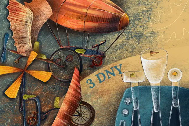 Jediné, co jsme na lodi našli, byl stroj se spoustou rour a trubic. Obcházeli jsme ho, zkoumali, jenže ne a ne přijít na to, jak by mohl fungovat. Ani náš nejchytřejší žalud na světě si nevěděl rady. Usadili jsme se na přídi a bezradně chroupali Sovinovy drobky. Byly to ty nejlepší drobky, co jsme kdy ochutnali. Přesto, že byly tak těžké, křupaly jako kousky čerstvé, nadýchané bagety. Snědli jsme je do posledního. A najednou se nám rozsvítilo. Plácli jsme se do čela.