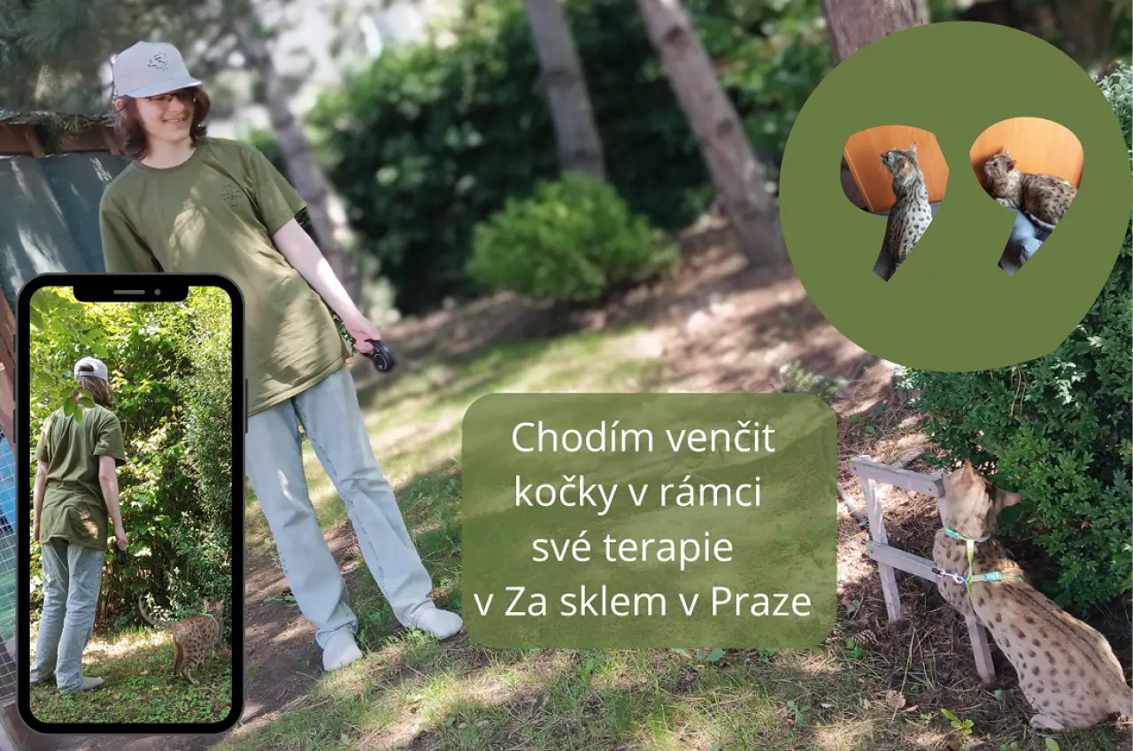 Taky jsem klientem Za sklem a chodím v rámci své terapie venčit jejich speciální kočky.