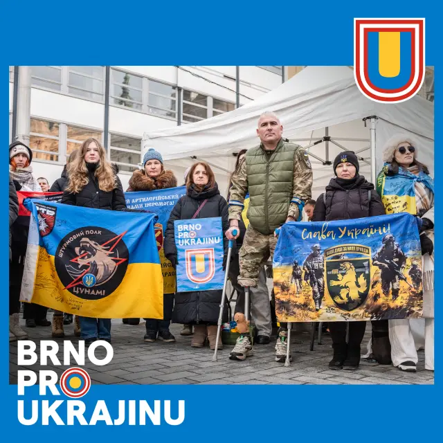 Bonusový snímek: Brněnské setkání s Dmytrem, jedním z veteránů, pro které jsme pořádali na podzim charitativní běh a sbírku. (Společně za Ukrajinu, Náměstí Svobody, Brno, 21. 2. 2026)