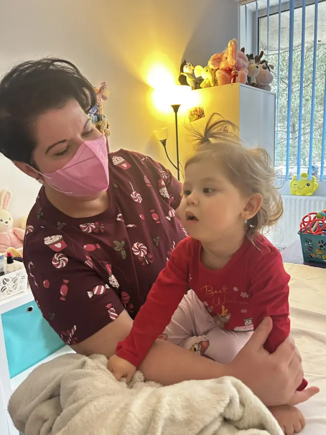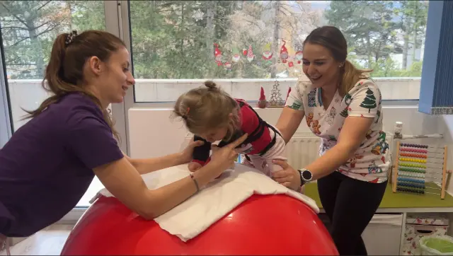 Dochází s maminkou na rehabilitace 3× týdně ale kvůli dlouhodobé hospitalizaci se intenzivně necvičilo byla slabá a prodělala v nemocnici covid. Nyní ve svých 20 měsících má 7650kg
