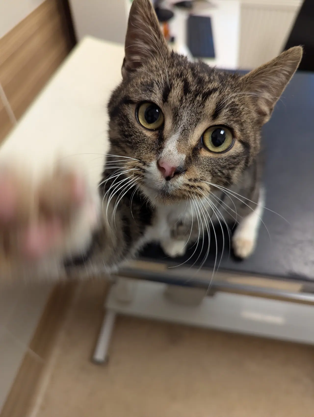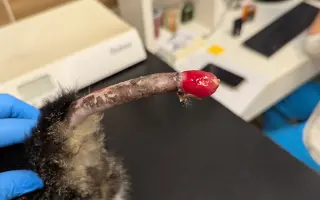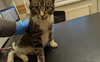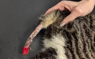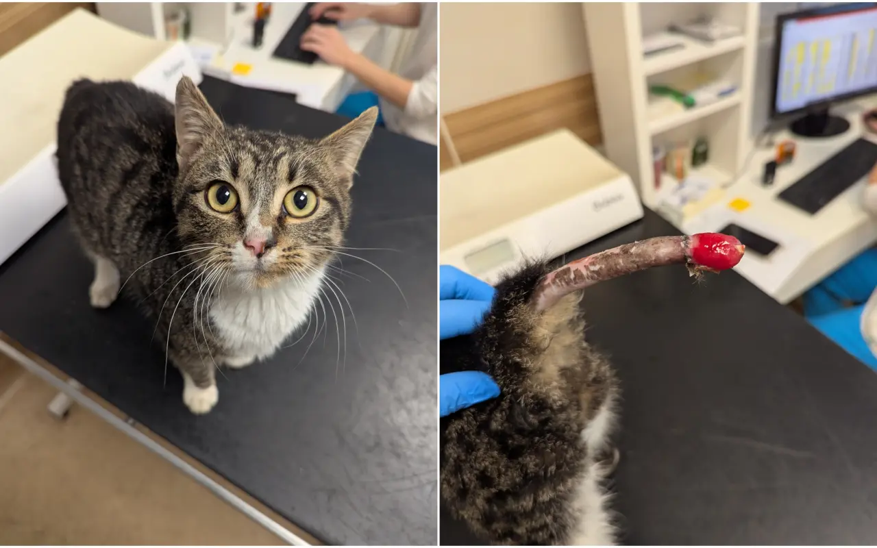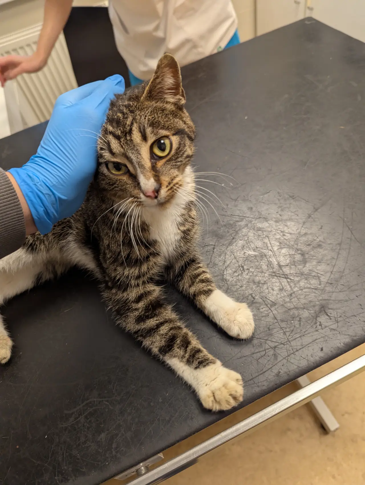 Kocourek Kryštof se k nám dostal za velmi dramatických okolností. Byl nalezen ve školce v obci Radostná pod Kozákovem s vážným zraněním ocasu. 😞 Velká část ocasu mu chyběla a na jeho konci vyčnívala kost. Jeho stav byl kritický a bez okamžité odborné pomoci mu hrozila sepse.