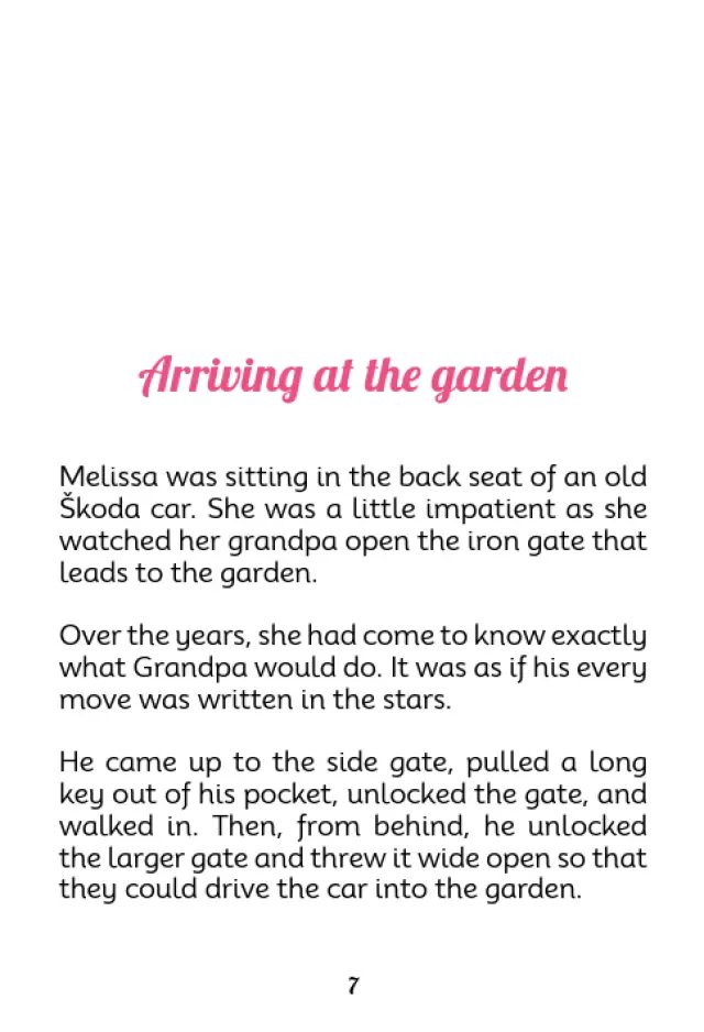 Melissa přijíždí se svým dědečkem na zahradu, kde se seznamuje s přírodou a učí se od dědy mnoho věcí o zahradničení a také o životě.