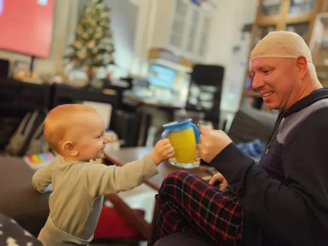 We started living “normally” again and even looked forward to welcoming our second son. Unfortunately, a week before his birth in November 2024, a routine check revealed that the tumour had returned. Honza immediately underwent another risky brain surgery. Thanks to the incredible effort of the team at the Military University Hospital in Prague, he was able to be with me for the birth of our second son, Toník.