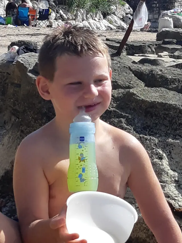 Řeč není u syna rozvinuta vůbec, dorozumíváme se pomocí slabičných zvuků a posunky, potřebuje komplexní pomoc v mnoha oblastech základních životních potřeb.