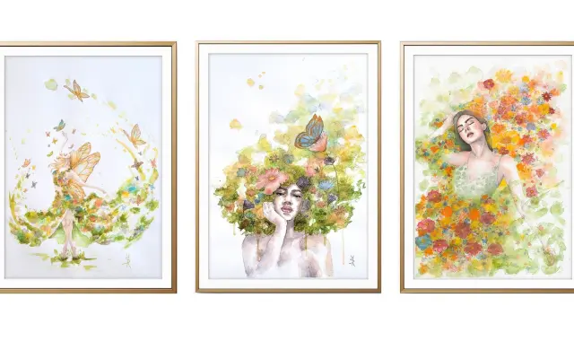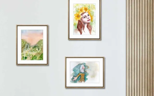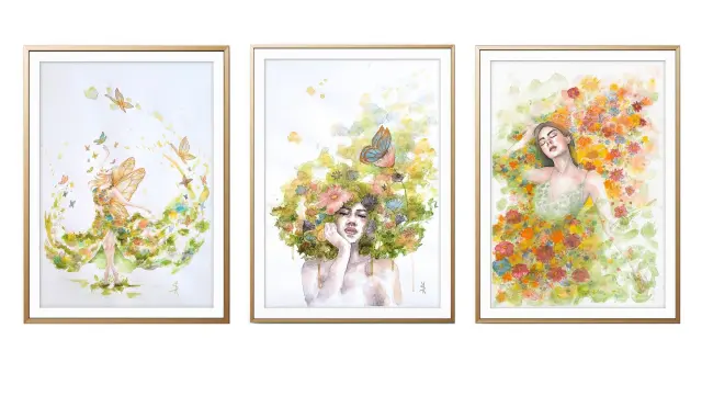 Set 3 obrazů velikosti A5 - Vítej, léto, Na procházce, Dívka s narcisy
