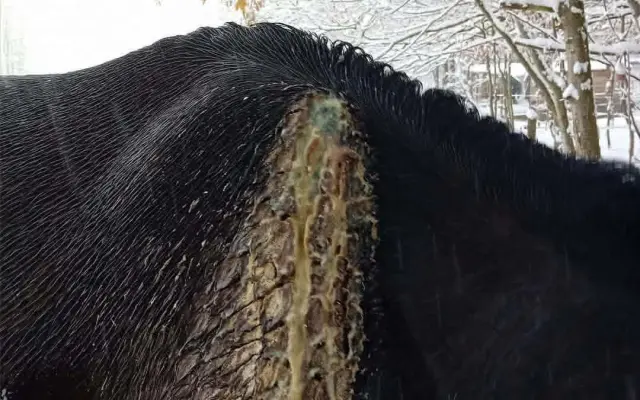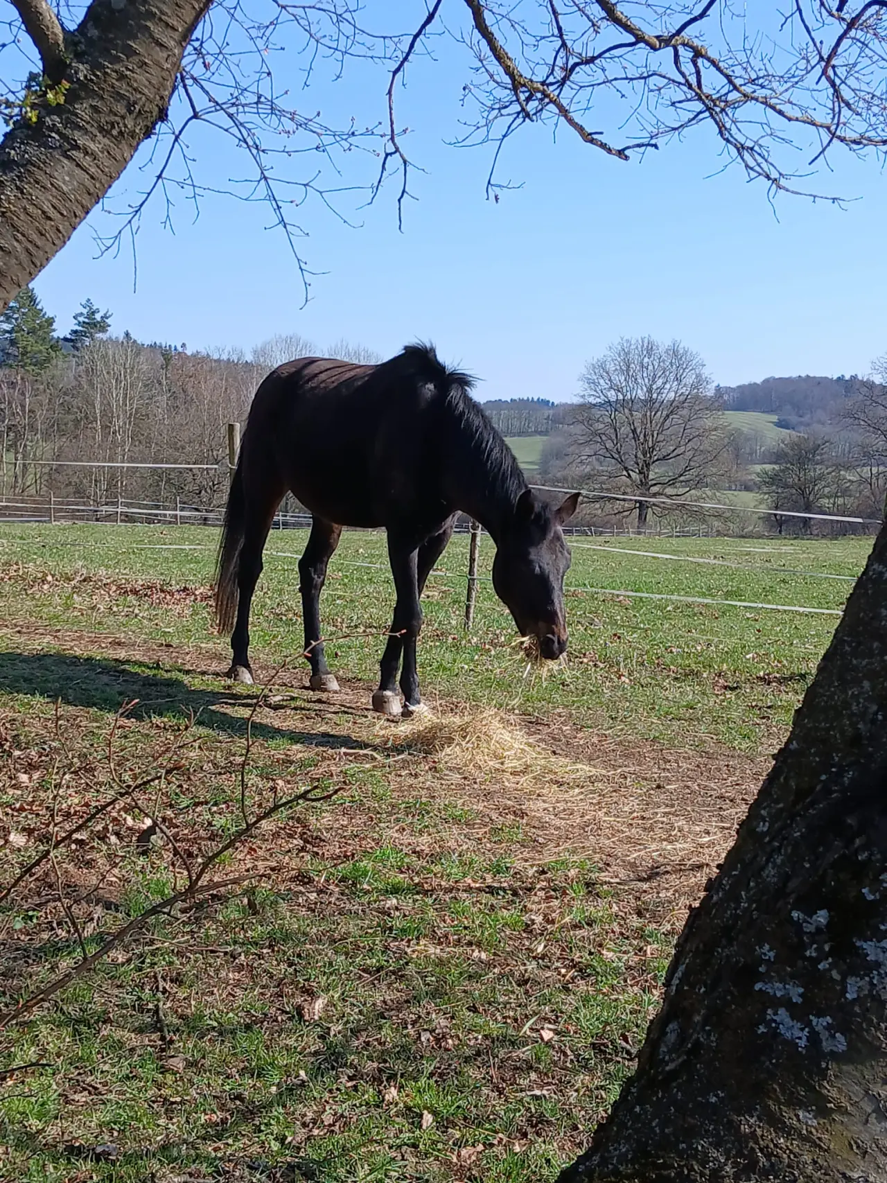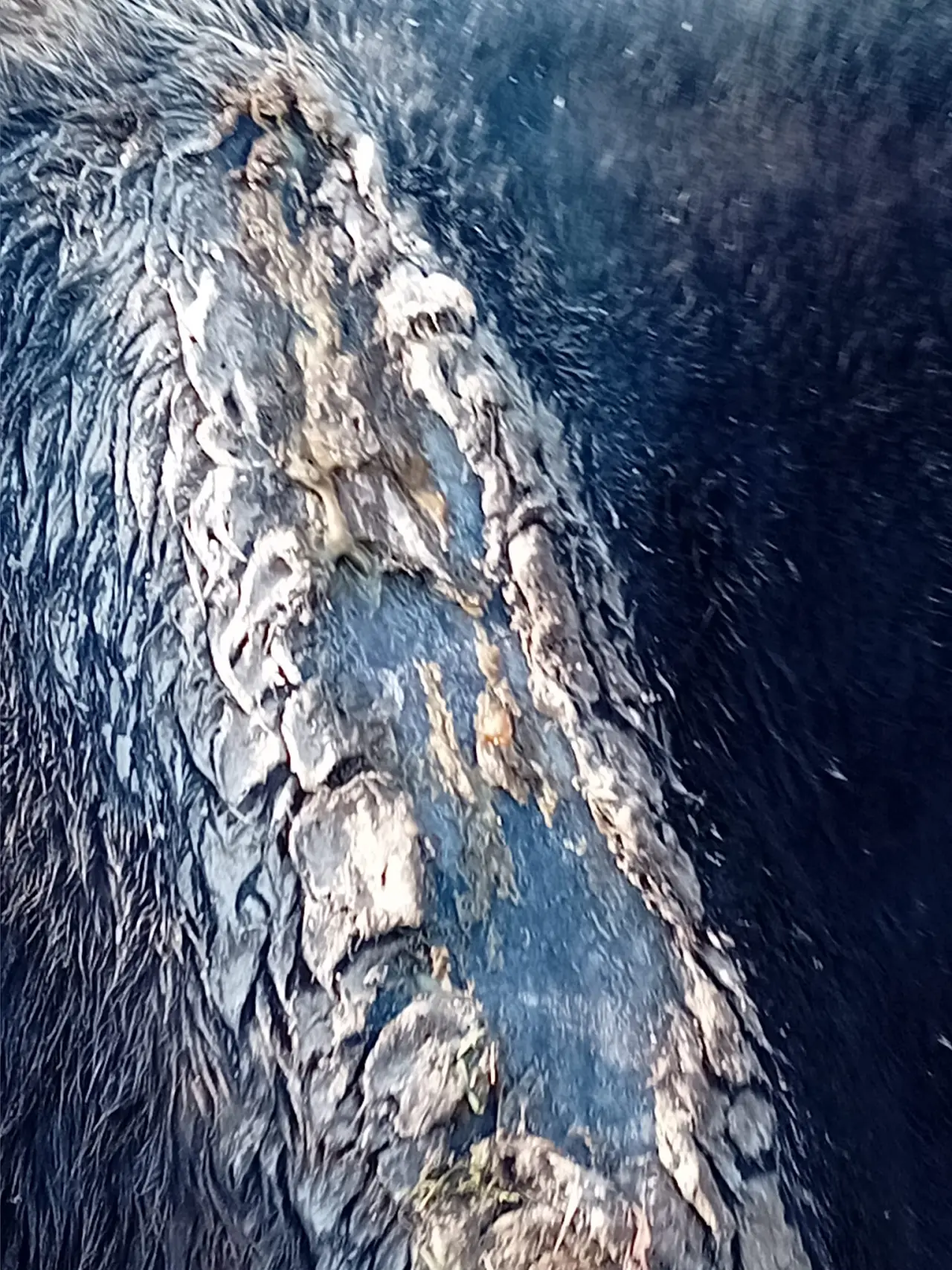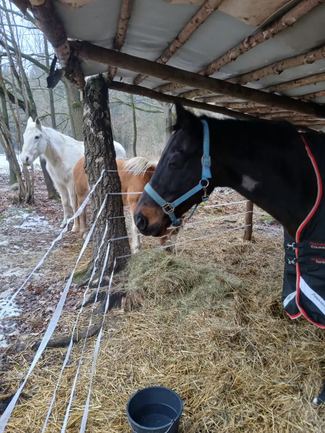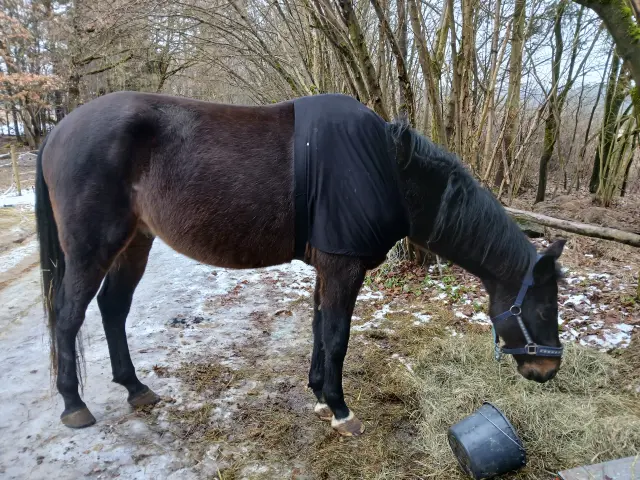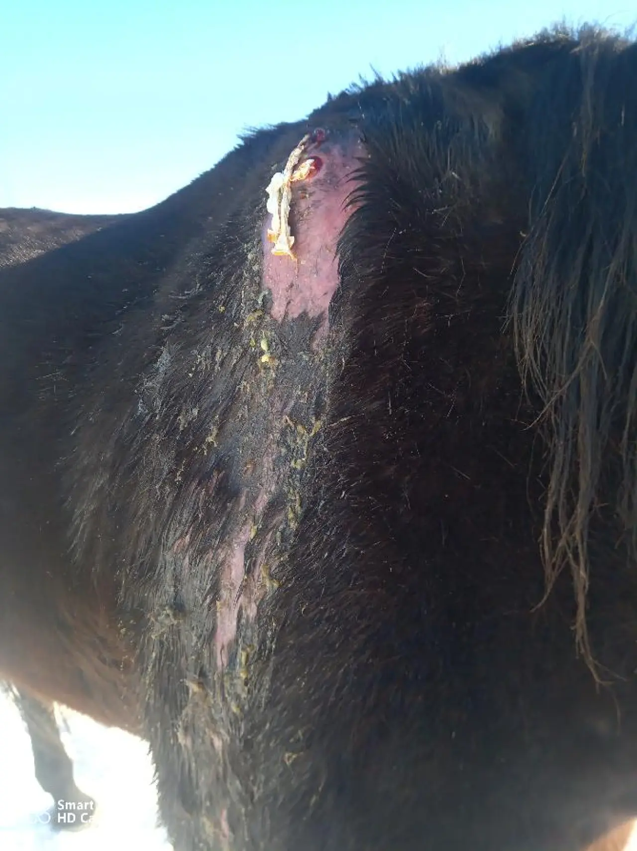 Jenže, když majitelka Nitise viděla, nestál tam kůň, který se vzdává. Stál tam bojovník. Kůň, který i přes bolest dychtivě sleduje okolí, nechce odejít, nechce to vzdát…A tak věděla, že mu musíme dát šanci. Po domluvě byl převezen k nám a začali jsme zkoušet různé alternativní možnosti léčby. Nitis se u nás velmi zlepšil , po psychické i fyzické stránce, začlenil se do stáda, začal dobře žrát a majitelka mu po celou dobu dopřávala kůry hirudoterapie, očistné kůry Cytovetu, Dračí krve, konopného oleje, homeopatie, křemeliny, DHA a krmnou dávku mu doplnila o další výživové doplňky. A já denně vyplachovala píštěl …Množství hnisu a nekrotické tkáně, které odcházelo se nedá popsat…Nitis byl po celou dobu stále velmi milý, i když tělo obrovsky bojovalo, měl zájem o kontakt, všude mě doprovázel, vítal mě, vedl život se svými stádovými druhy… Zánět se po 3 letech u nás ohraničil, výsledky krve jsou konečně v pořádku, píštěl už jen lehce teče a jak jsme po té mohli zjistit, stále tam dráždí nějaký úlomek kosti a tělo se snaží zbavit nekrotické tkáně kolem. Ke konečnému uzdravení a životu bez bolesti by mu mohla pomoci chirurgická operace na klinice v Brně.