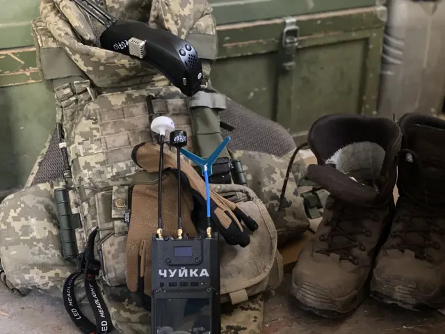 Na fotografii je detektor dronů „Čujka“ v rukách pilotky FPV dronů: