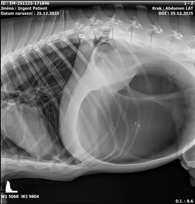 Teď se objevily zdravotní problémy – přetočený žaludek, který se zatím obešel bez operace kvůli špatnému krmení u bývalého majitele. Veterinářka doporučuje přišití žaludku. V plánu je udělat sono a poté se naplánuje operace.