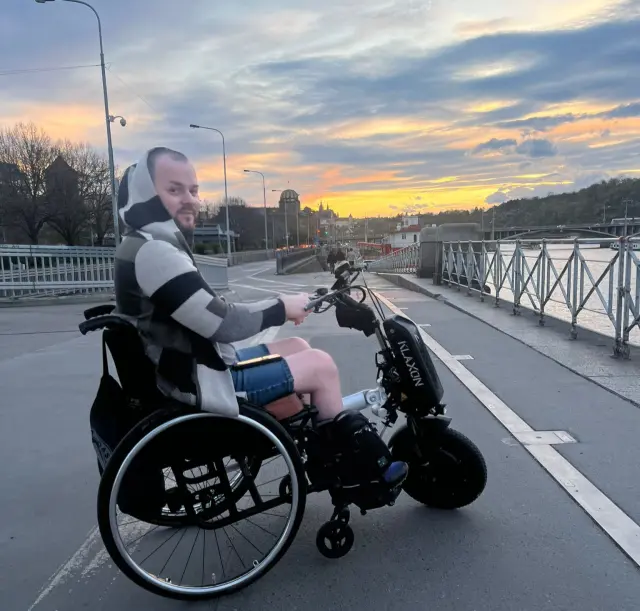 Přestože mi medicína už nemůže nabídnout zlepšení, já se nevzdávám. Chci se posunout dál a žít co nejsamostatněji. Sám na mechanickém vozíku se ve městě potýkám s každým obrubníkem, každým kopcem a každou nerovností. „Projít“ delší vzdálenost je bez pomoci blízkých nemožné.