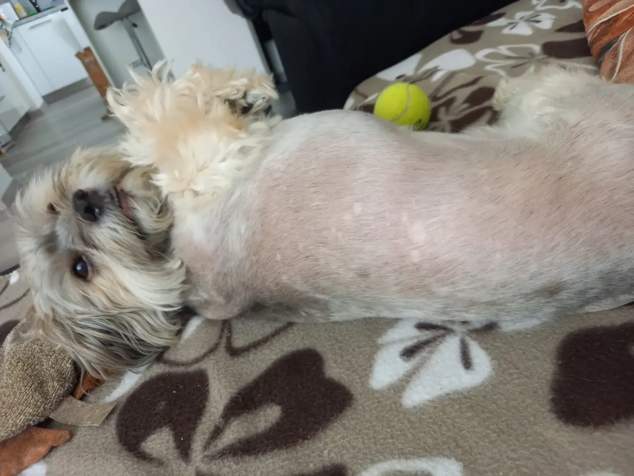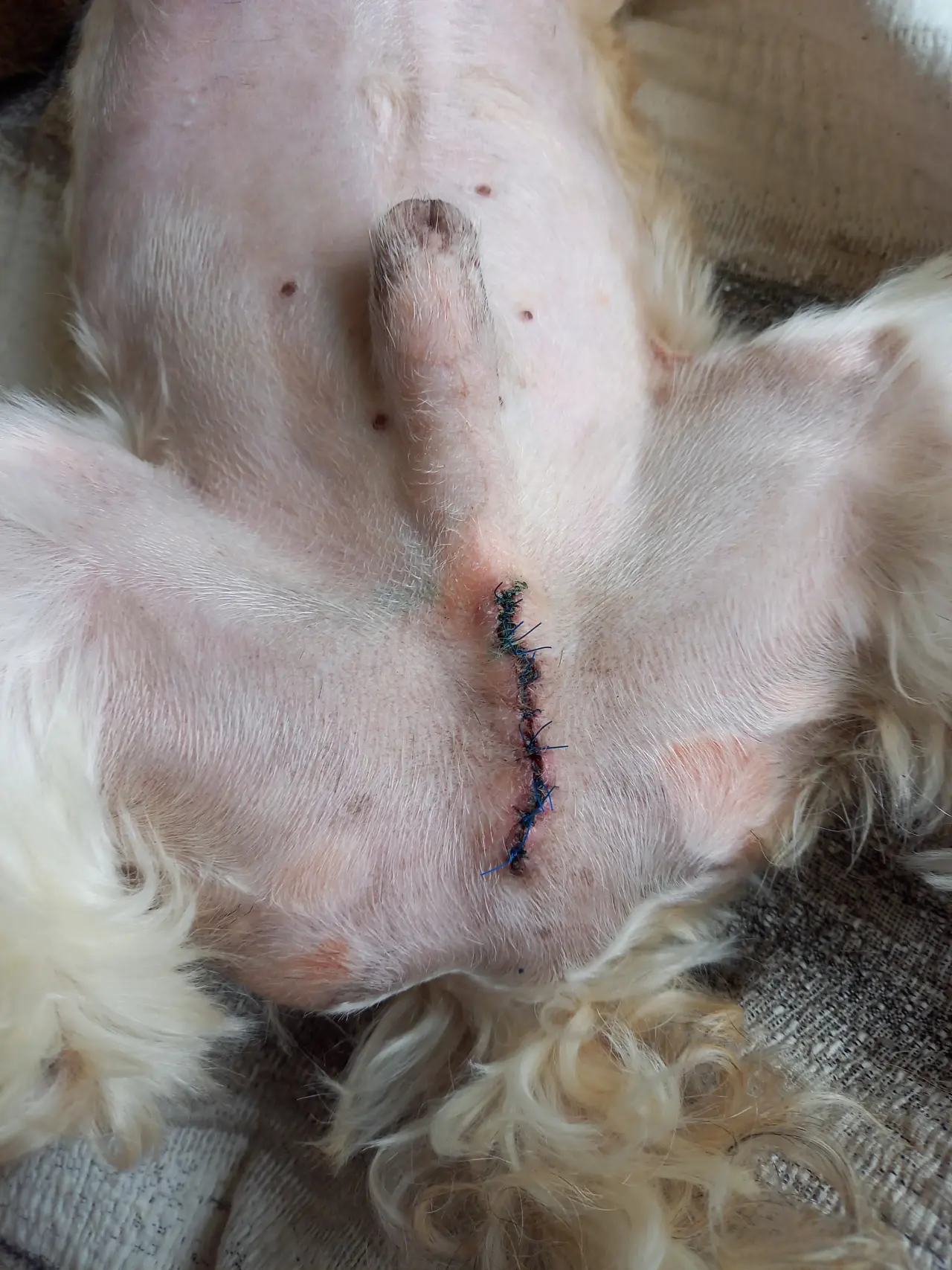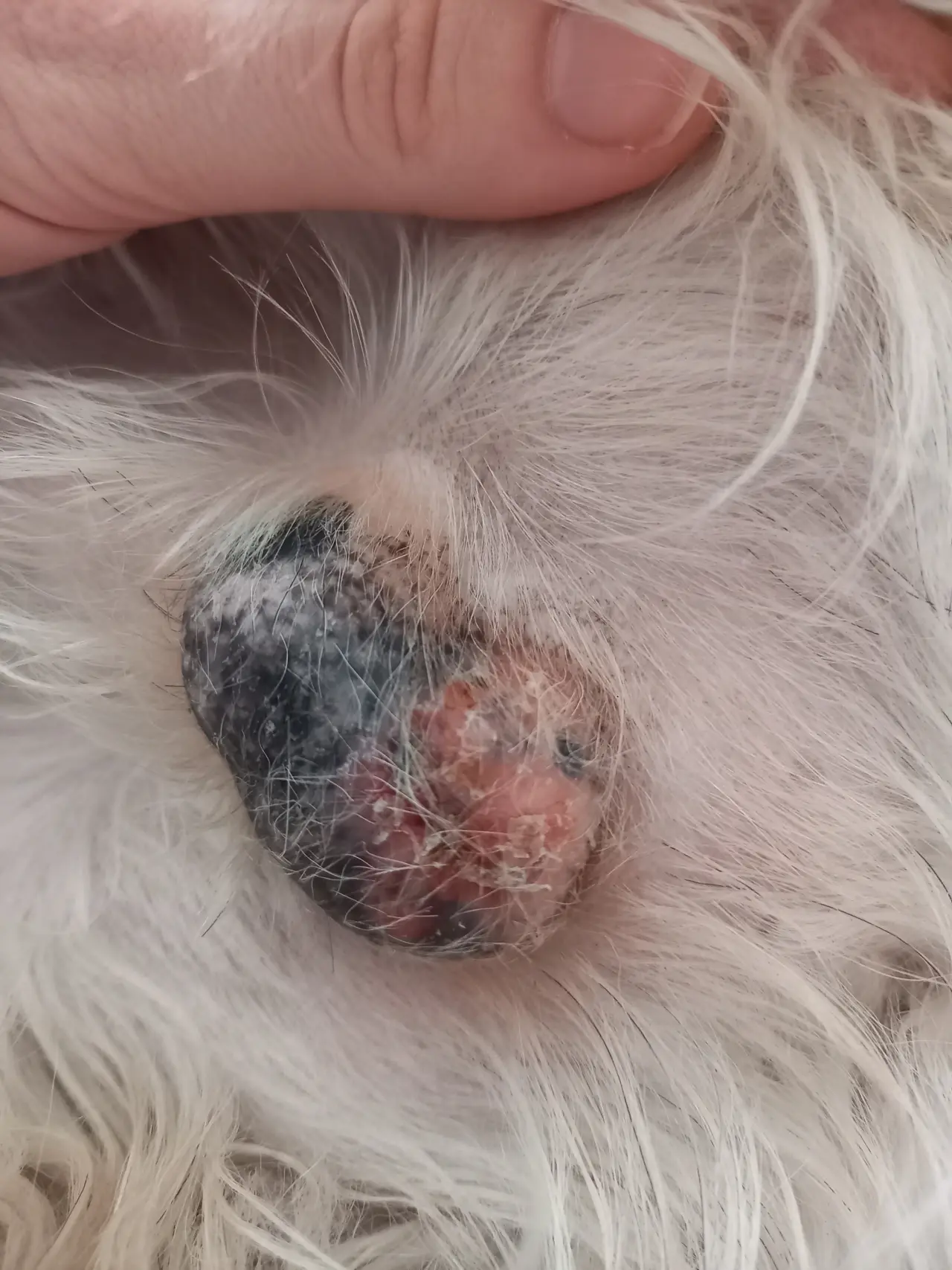 Vše začalo v listopadu 2023, kdy se mu na varlatech začaly objevovat šupinky kůže. Vše zpočátku vypadalo, že se jedná o obyčejnou dermatitidu, a tak to také bylo léčeno (speciální šampony, masti). Vše však pomohlo jenom na chvilku. Šupinky se postupně vracely, kůže začala být suchá, popraskaná, začal vznikat otok, který postupně zahnisal. V březnu 2024 byla ze strany veterináře doporučena kastrace pejska + provedení histologie. Výsledek: T-epiteliotropní lymfom.