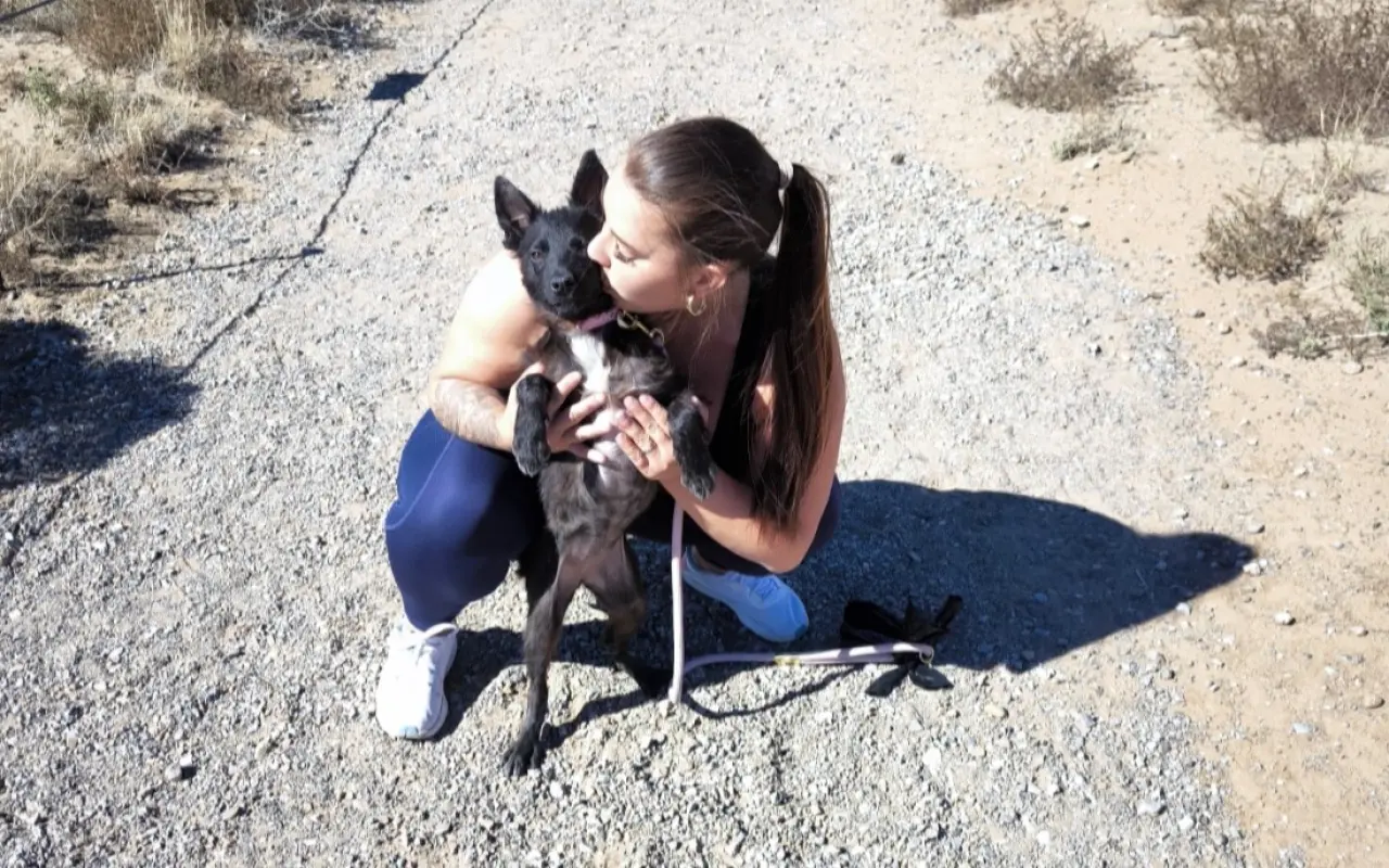 Ari jsme našli v noci v indiánské rezervaci . Vyčerpanou, hladovou a na pokraji sil. Veterináři v okolí ji chtěli utratit, a tak jsme ji převezením přes 600 km „přepašovali“ do hotelu, jen aby přežila do rána. Tehdy jsme ještě nevěděli, že si ji nakonec necháme… chtěli jsme jen jistotu, že ji neutratí.