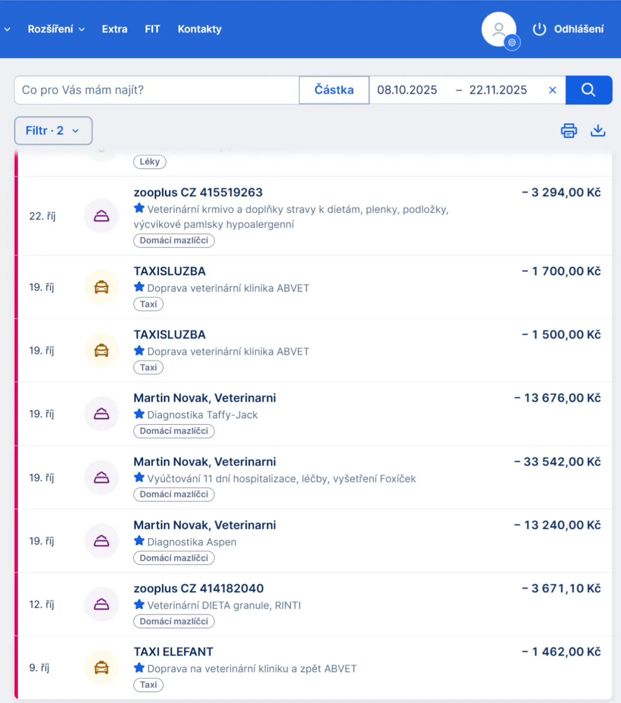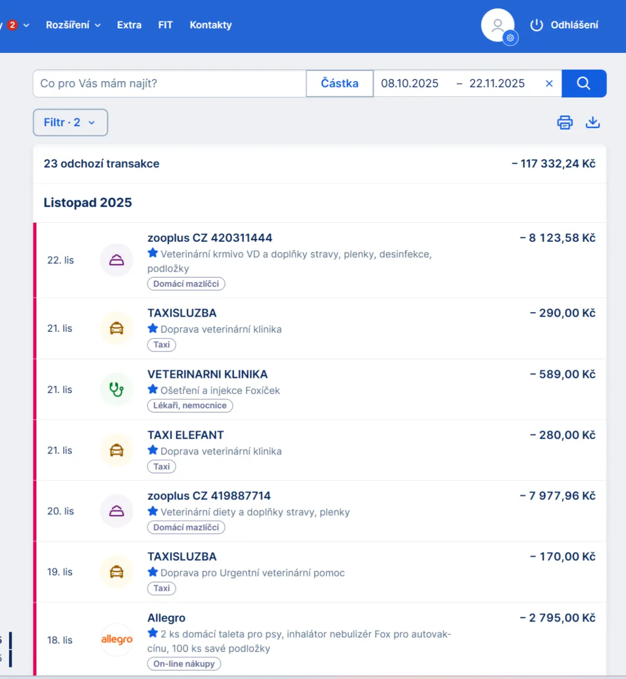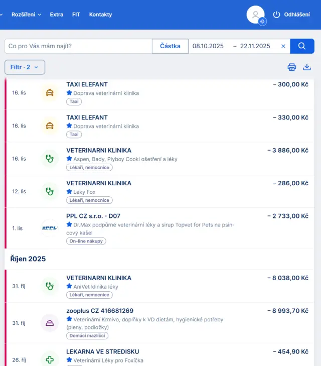 Konkrétní faktury odešleme na vyžádání výzvou na email zviratek.raj@seznam.cz a zde přikládáme výpis z banky o platbách s přesnými popisy. Prioritou je pro nás péče před administrativou, ale do 3 dnů Vám fa odešleme🥰.