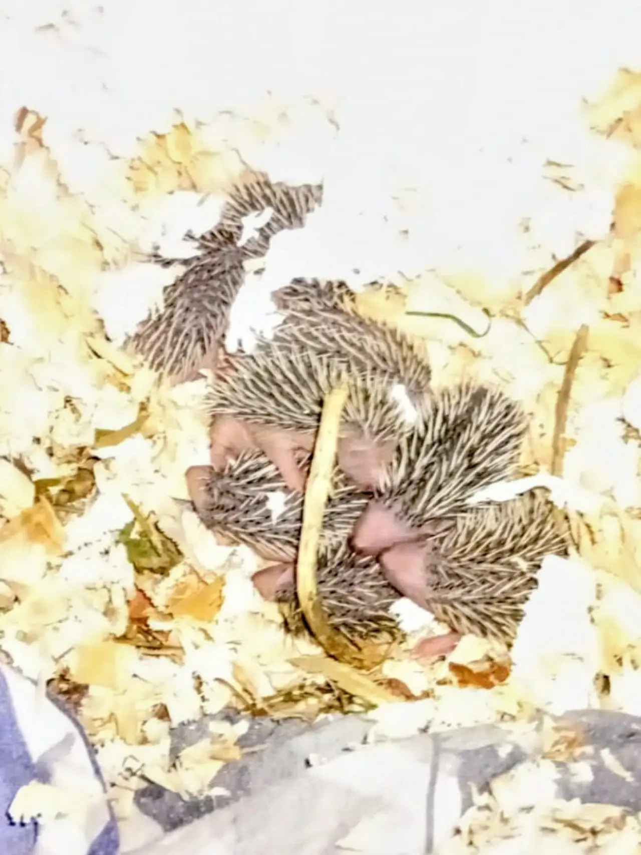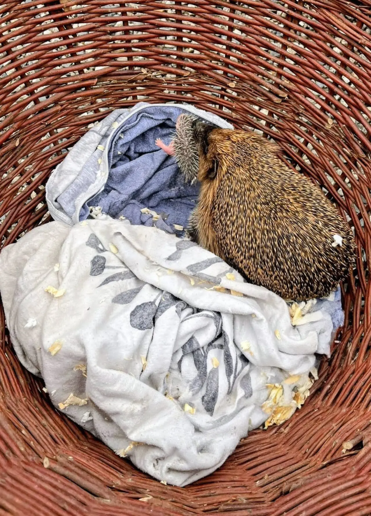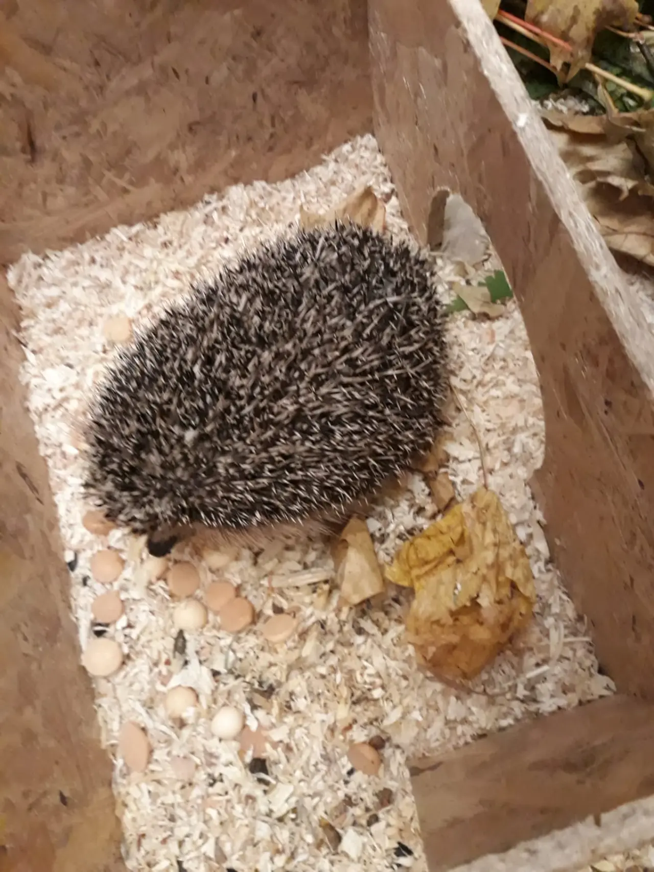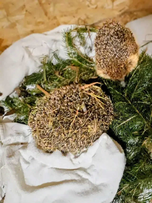 Nový příjem dvou ježků ještě v obalu z krabice, ve kterém je nálezci předali do naší péče. Po dosažení hibernační váhy byli již přemístění do speciálních domků ve svahu zahrady