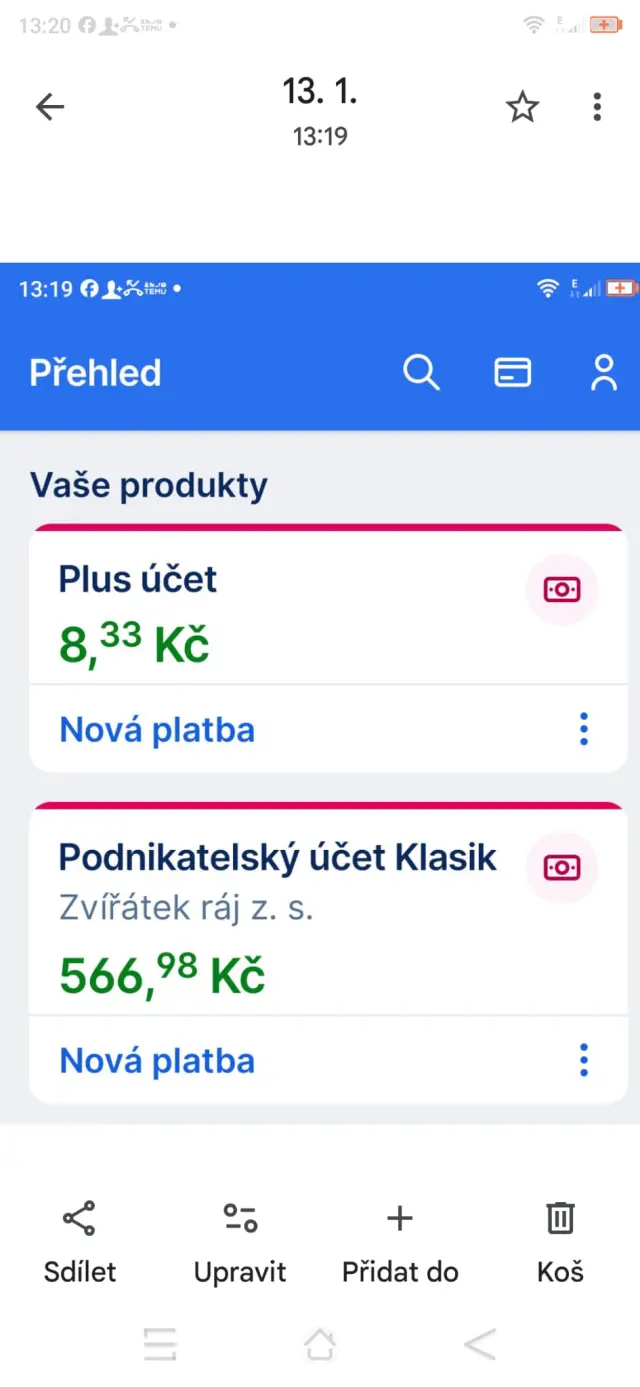 🔴 **TRANSPARENTNÍ ÚČET:**