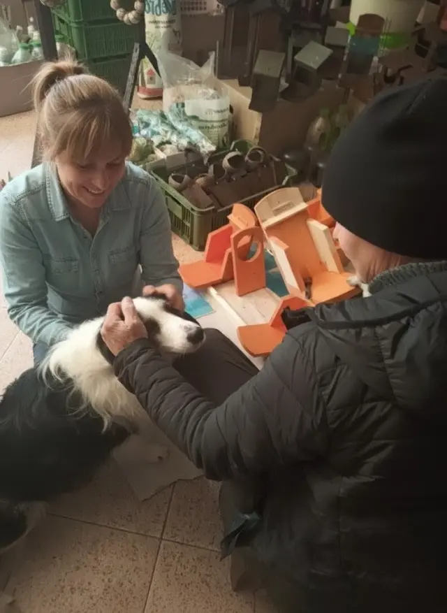 Během natírání krmítek asistuje i náš ROMEO, jak říkáme RONEČKOVI, který je velmi přítulný a kontaktní ke všem dobrovolníkům.