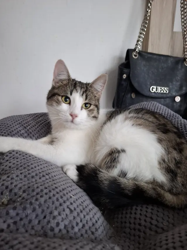 Za všechny kočičky u Kočky u Katky vás zdraví jeden letošní zachráněný drobeček. Původně kocourek… dnes už víme, že kočička 😊. Byla nalezena u kravína ve velmi špatném zdravotním stavu, slabá, nemocná a opuštěná. Díky necelému měsíci láskyplné péče paní Katky se z ní ale stalo zdravé, hravé a nesmírně mazlivé kotě. Brzy ji čeká další velký krok – bude hledat své milující DOMA.