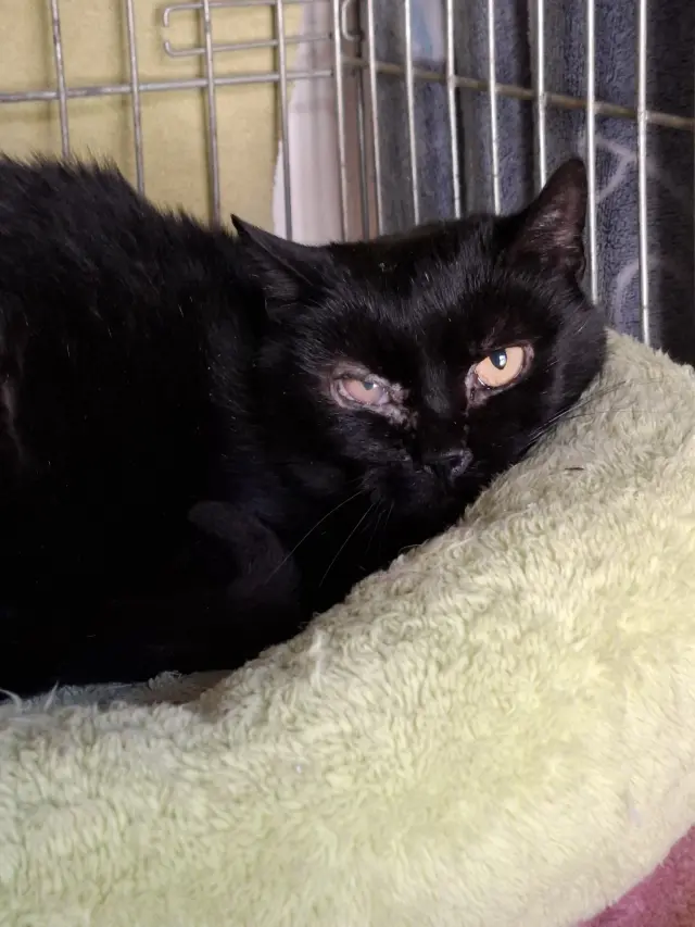 • Plachá kočka po krutém zacházení, která se znovu učí důvěřovat člověku.