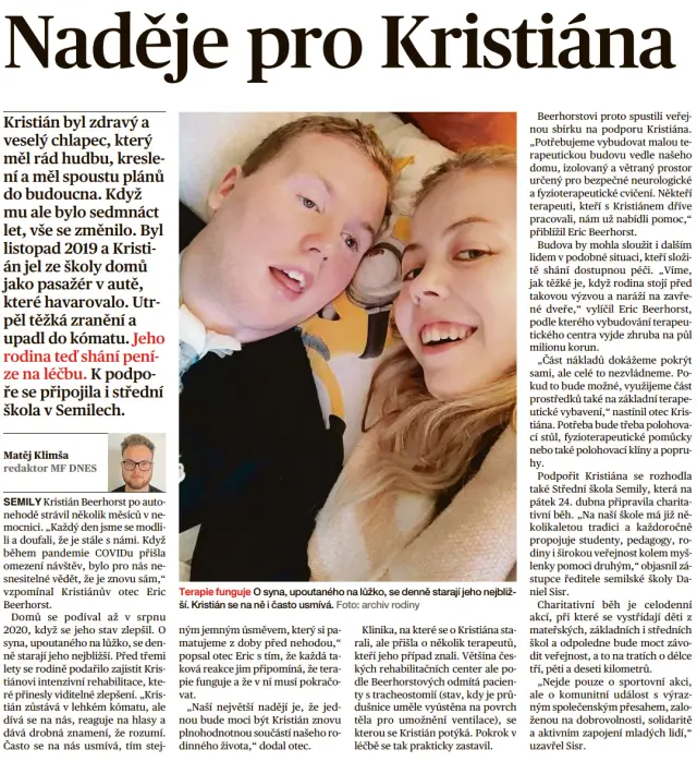 Děkujeme redakci MF DNES/iDNES.cz za krásný článek o Kristianovi