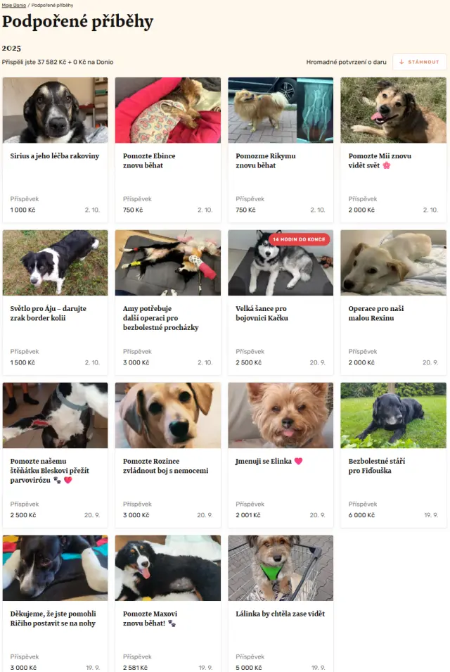 rádi bychom vás informovali, že částka, která zůstala ze sbírky na naši milovanou Daisičku, nezůstala nevyužitá. Rozhodli jsme se ji s láskou rozdělit mezi další pejsky, kteří mají na Doniu své sbírky a potřebují pomoc.