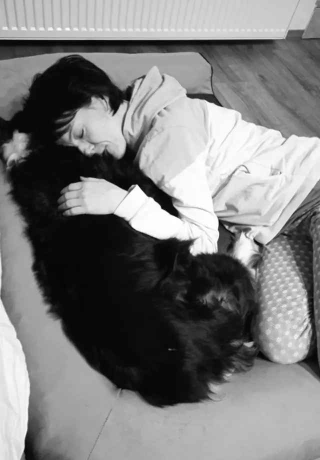 Na fotografiích je se mnou náš čtyřnohý chlupáč – zatoulaný Laky… Před cca 12 lety se k nám zatoulal a už u nás zůstal…a labradorský retrívr – Lotty z Canisterapeutického sdružení Jižní Morava, která, společně se svou obětavou paničkou Hankou, léčí už jen svou přítomností…