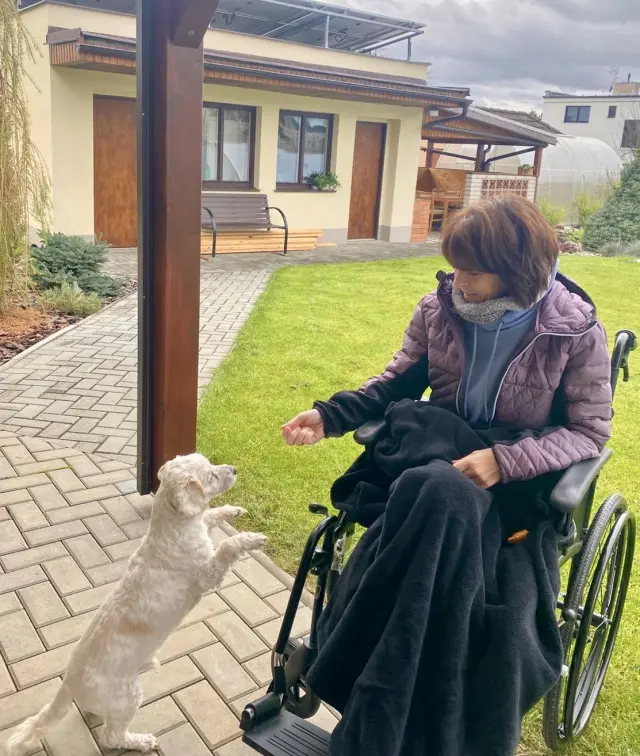 V poslední době mi začala ustupovat spasticita v nohou – něco, co jsem považovala za překážku, se pro mě paradoxně stalo oporou. Díky ní jsem se cítila jistější při přesunech… Teď, když mizí, přichází nejistota, pády, bolest. A s tím i vnitřní boj – potřebuji pomoc, ale těžko si o ni říkám. A přitom vím, že bez ní to už nepůjde.