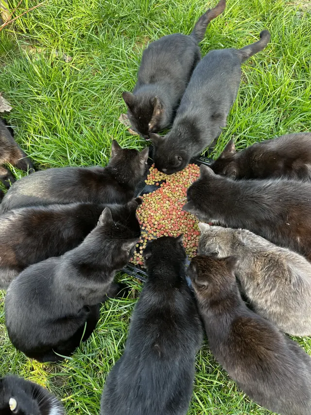 Aktuálně pečujeme o zhruba 80 kočiček v různých lokalitách, kde zajišťujeme kastrace, léčbu, pravidelný dohled i krmení.
