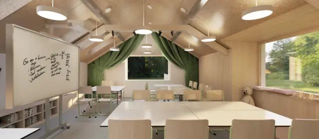 Usilujeme o podnětné, bezpečné a funkční prostředí, v němž děti naleznou podněty a podporu pro své studium a rozvoj. Vizualizace ukazují naši představu o atmosféře a možnostech nových učeben.
