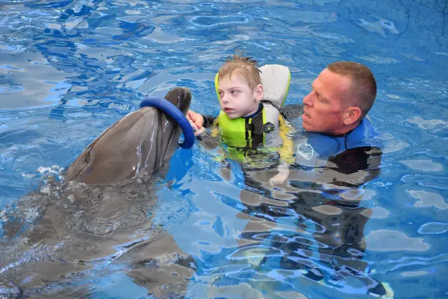 Díky delfinoterapii má uvolněné ručičky, lépe vnímá, fixuje a dokázal s pomocí sedět a udržet hlavičku 20 vteřin