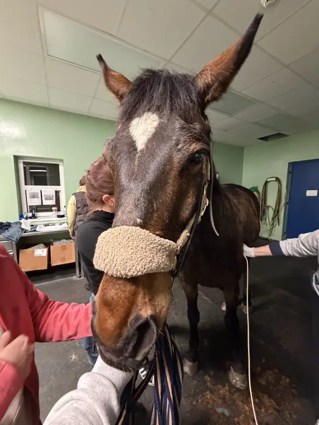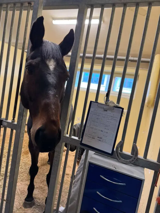 Stav byl tak vážný, že byl Gryff bez prodlení naložen do přepravníku a za konzultace s Horse Emergency převezen na veterinární kliniku do Brna. Tam se již ale dostal Gryff ve stabilizovaném stavu a proběhla jen základní vyšetření(tepová frekvence 60–64tepů/min., bez teploty, sliznice suché, peristaltika v normálu, krve v normě, sono břicha pod.) a zůstal na pozorování. 25. 2. 2026 se s námi vrátil domů, kde byla dodržována veškerá doporučení od veterinářů .