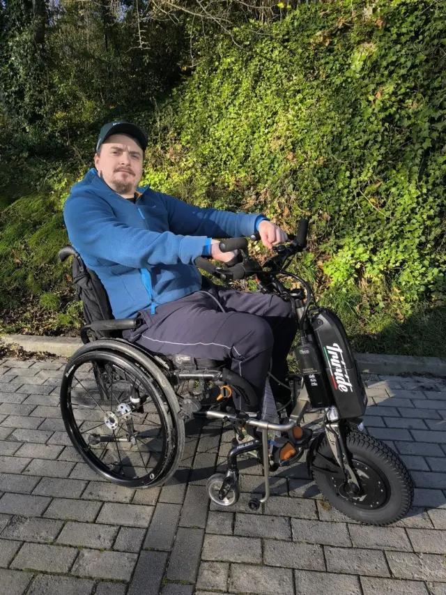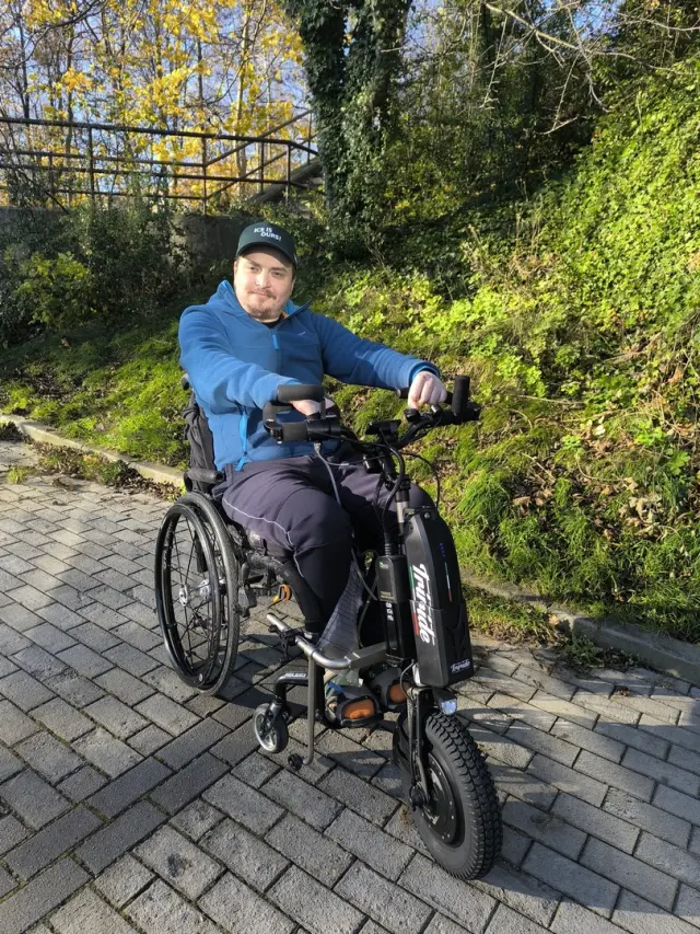 Rád bych si pořídil pohon k mému mechanickému vozíku, abych se synem mohl držet venku krok, např. na kole či inline bruslích. Na doporučení známého a po pečlivém uvážení jsem vybral elektrický přídavný pohon Triride COMPACT HT. Tato italská firma totiž nabízí vhodnou úpravu ovládání pro mé částečně ochrnuté ruce. Takto vychytaný a dostatečně výkonný pohon však stojí 185 700 Kč. To je však pro náš rodinný rozpočet nedosažitelná částka. Nyní mám od nadace příspěvek 90 000 Kč, ale zbytek stále bohužel chybí. Proto prosím o jakýkoli finanční příspěvek, který by mi pomohl s pořízením této pomůcky. Ta zase pomůže mně více podporovat syna v jeho sportovních aktivitách a umožní mi trávit více času v přírodě.