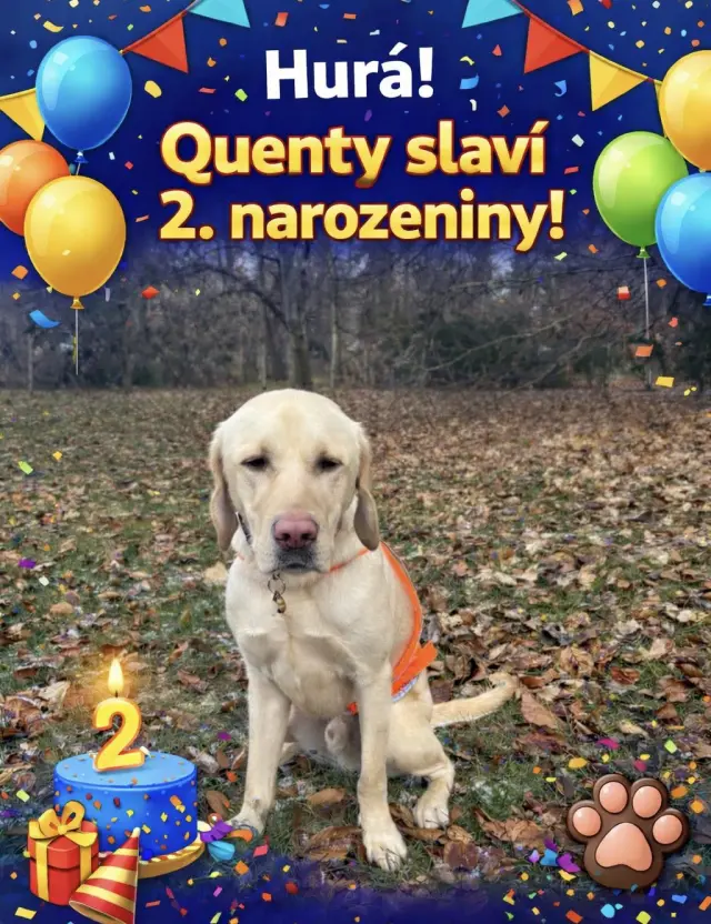 Dnešek je především o radosti a vděčnosti. Děkuji vám, že jste se stali součástí Quentyho příběhu a že podporujete psa, který mi každý den pomáhá. ❤️