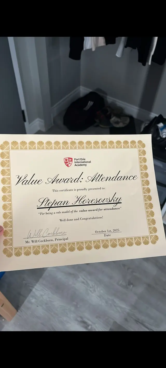 Jeho studijní výsledky ve škole jsou velice dobré, v prvním oficiálním hodnocení od učitelů má ze všech předmětů 90 a více procent, dokonce získal ocenění za svou píli a vytrvalost 🙂. Ve svém sportovním programu je také úspěšný, se svým školním fotbalovým týmem absolvovali již několik turnajů/showcase, v New Jersey byl dokonce ohodnocen za nejlepšího hráče zápasu 😍👍.